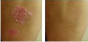 2010年5月,周然如约来到南京肤康皮肤中医门诊部,齐主任主任热情的接待了他,经齐主任主任确诊,他患的是红皮症型银屑病,全身大面积红斑、浮肿、发烧,已经非常严重。来院的第二天,周然开始接受中医经络肺俞十穴排毒祛癣疗法的诊治,经过两个月的规范治疗,周然浮肿消退,不再发烧,身上皮损也消失了,多年的老皮癣也终于痊愈了。