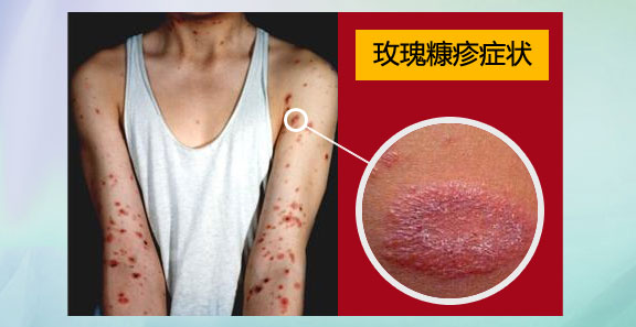 玫瑰糠疹是常见的炎症性皮肤病,好发于躯干和四肢近端,其发病与柯萨奇B组病毒感染有直接关系;而且部分患者会伴有剧烈的瘙痒,尤其是在晚上,瘙痒更加剧烈。