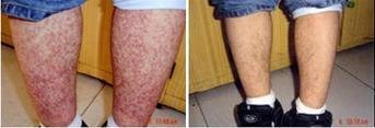 他终于在邻居的劝说下来到了南京肤康皮肤中医门诊部,经过检查,他是激素依赖性皮炎,给他采用了“中医经络曲池十穴排毒祛疹疗法”疗法给他治疗,因为有了5年的皮炎病史,比较严重,所以花了三个月才治好。