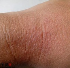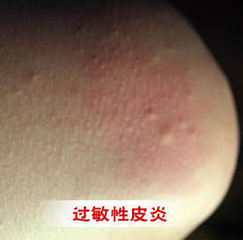 1. 过敏性皮炎:一旦产生皮疹,刚开始表现为针头至粟米粒大小,密集的红斑、丘疹和丘疱疹,常对称分布,有瘙痒或者有灼热感。伴有少许柔软而细薄鳞屑,皮肤皱纹清楚,局部温度稍低。因搔抓可出现湿疹样皮疹,以丘疹为主,水疱、糜烂或渗出较少。