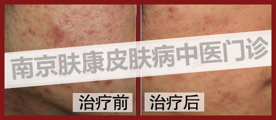 随后李帅又停停用用了一段时间,但脸上的症状的却越来越严重,不仅出现了红斑还继发感染出现了脓疱,同时伴有瘙痒症状,继续涂药也不见缓解。无奈之下,李帅来到南京肤康皮肤中医门诊部求助于医生。