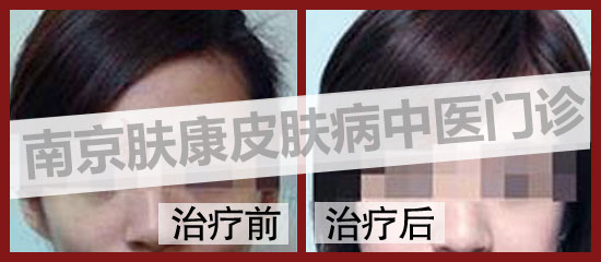 老妈还给我找了很多偏方,像吃首乌片,吃芝麻啊,还有养气血的我都吃。可吃了一、两个月也没有效果。还在网上看到有人说用生姜涂抹头皮非常有用,可以刺激头皮,我就试着用了一个月,结果也是毫无起色,唯一的就是满身的生姜味。后来在网上看到了南京肤康皮肤中医门诊部治疗脱发效果很好,就抱着试试的态度去了医院。