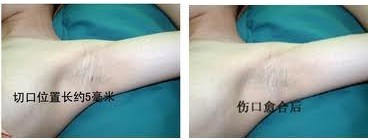 自然美观 腋下作很小的切口,将腋下汗腺根部破坏,使其丧失分泌功能,术后皮肤皱褶自然美观。