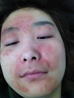 当天医生给我配了一些药,让我拿回家涂,药涂到脸上,凉凉的特别的舒服,用了一个疗程后,脸不那么地痒了,红肿也开始慢慢地消了,上一张图给大家看一看。